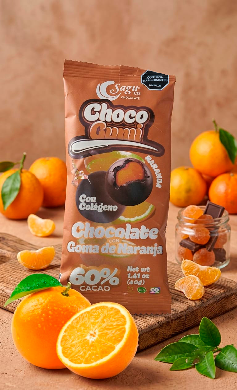 Gragea de chocolate 60% con goma de naranja y colágeno